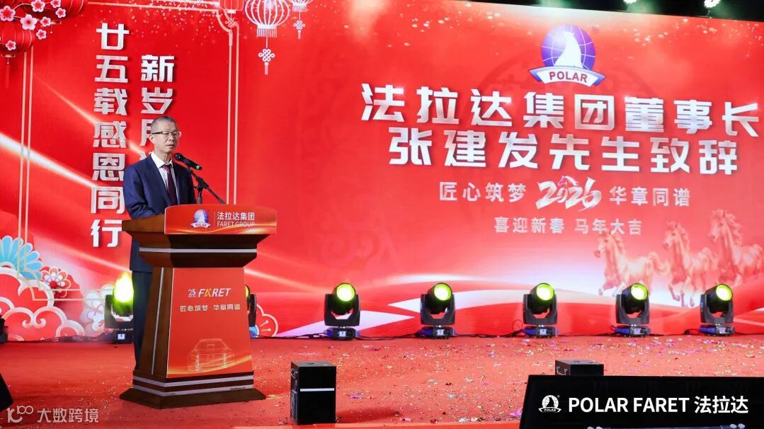 何总向为企业付出青春与智慧的全体伙伴致谢,何总感慨法拉达二十五载的发展凝聚着众人的汗水与坚守。他指出,企业最核心的财富是淬炼出的刻苦耐劳、专注务实的法拉达精神,各岗位员工的匠心付出铸就了产品质量的金字招牌,也让集团在市场挑战中站稳脚跟。站在 2026 年新起点,集团提出 “创新引领,稳健致远” 的年度经营方针,阐释其是在务实基础上勇于创新、在发展中坚守质量与责任。最后何总鼓励大家融合历史韧劲与未来冲劲、务实根基与创新翅膀,凝心聚力让法拉达在新征程续写辉煌。