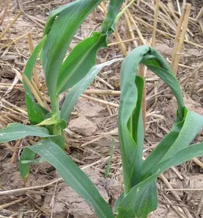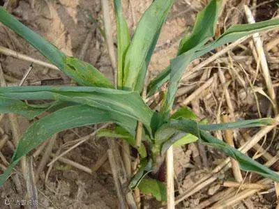 2.对于已形成“鞭状”的玉米苗,可用锥子从鞭状叶基部扎入,从中间豁开,让心叶恢复正常生长。