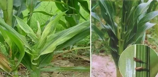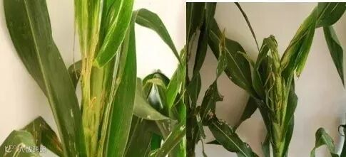 发生原因:2种害虫喜欢在幼嫩的未抽出的心叶取食,造成心叶不能正常展开。