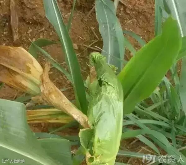 2、受瑞典秆蝇危害,瑞典秆蝇又称黑麦秆蝇,自1998年在玉米上突然暴发,近年来为害逐年加重。其虫体很小(成虫体长1.5-2毫米,黑色有光泽;初孵幼虫像水一样透明,成熟幼虫黄白色蛆状),加之为害较为隐蔽,人们一般不易察觉。幼虫孵化后即从心叶缝间钻入心叶内为害,使心叶的叶尖受害,并被其分泌的粘液粘着,不能展开,但下部叶片继续生长,从而使心叶形成“歪头状”或“环形状”,老百姓称之为“长成了小辫儿”。玉米苗受害较早且伤到生长锥,会形成“枯心苗”;如受害较晚,幼虫仅为害到心叶的边缘,叶片展开时会形成“皱缩状”,并可见发亮的粘液痕迹。如果不是形成“枯心苗”,对玉米一般没有太大的影响。