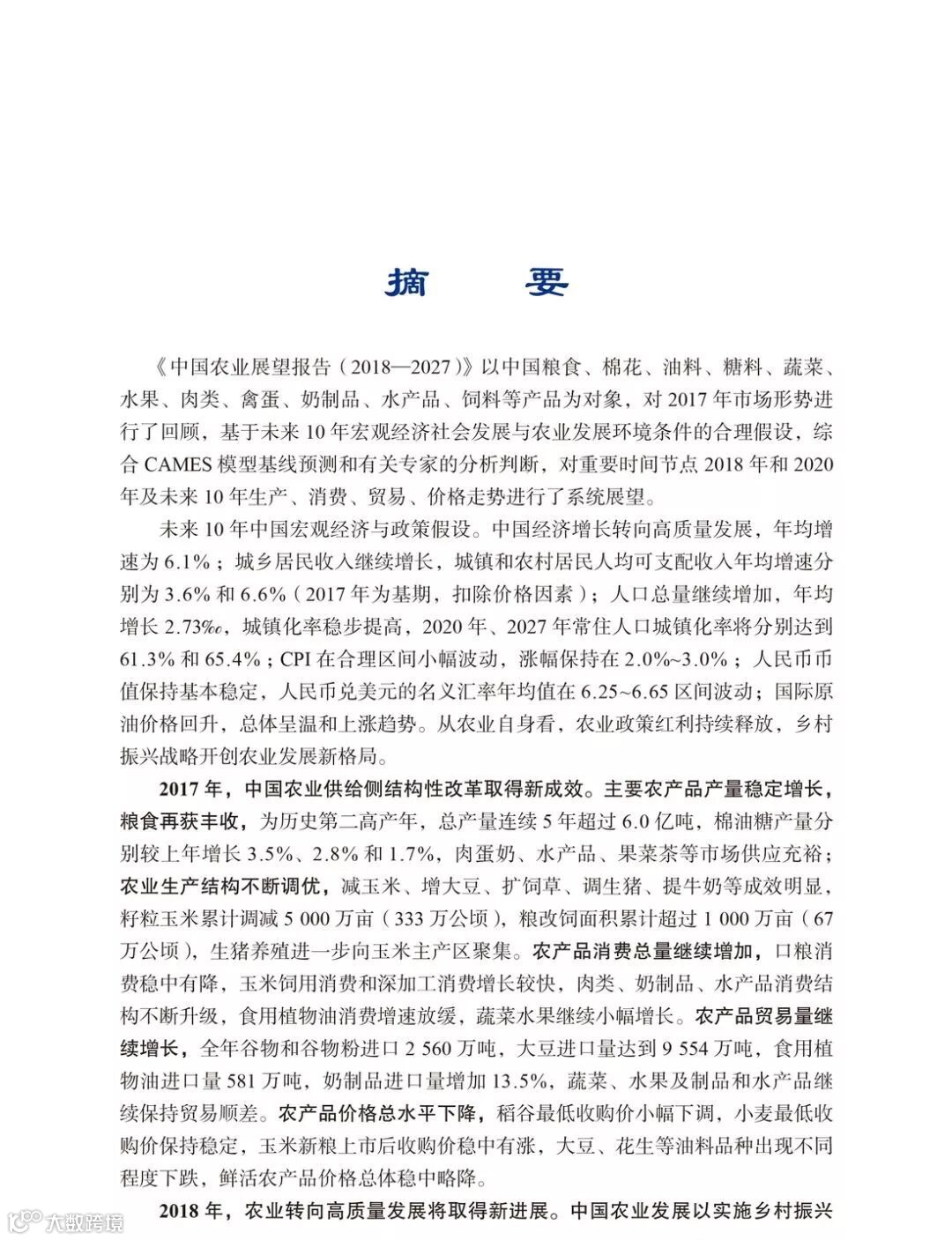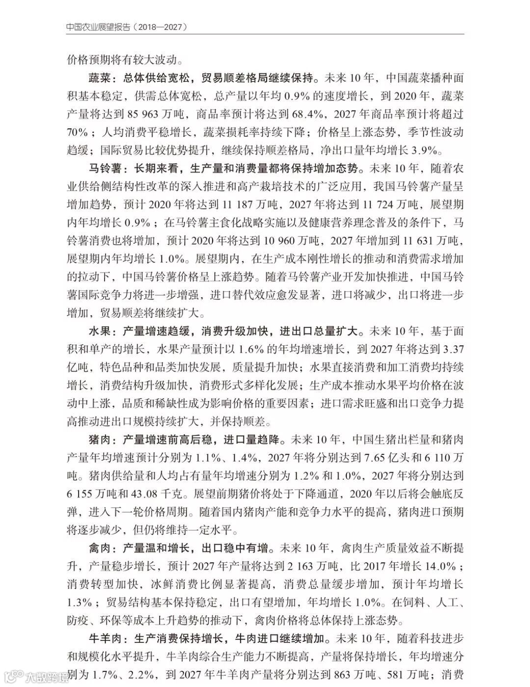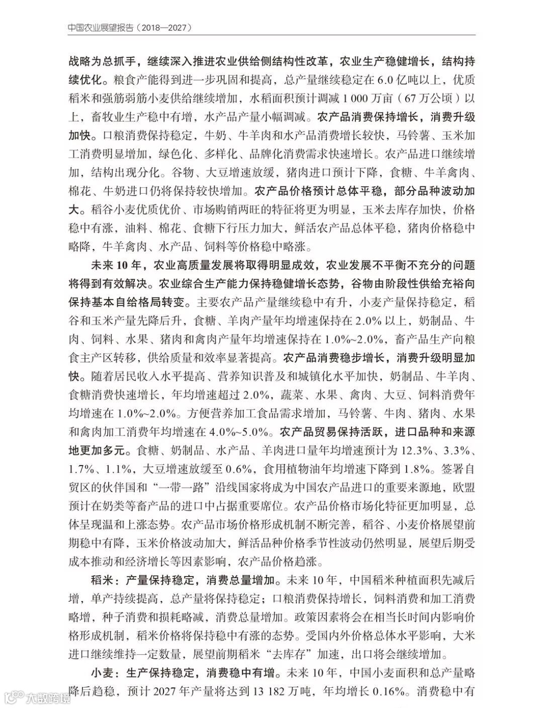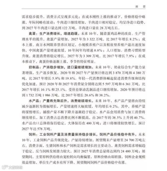 以下是报告对未来十年中国农业展望的部分摘录: