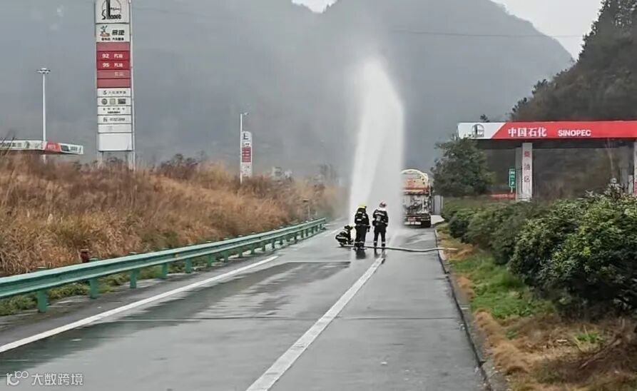 湖南湘西高速一危化品罐车突发故障泄漏