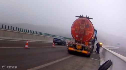 事件:3月4日下午,山西长延高速上,一辆满载危险化学品的重型半挂车,右前轮突然爆胎。巨大的车身斜停在路上,占用了行车道和应急车道。