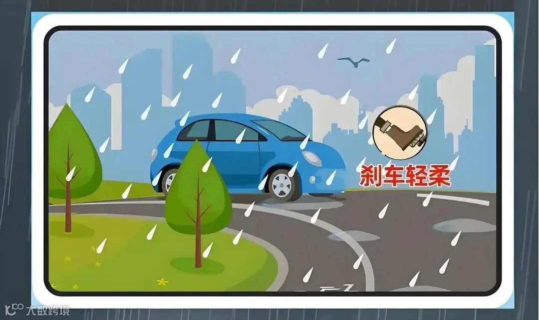 雨天道路湿滑,要保持低速行驶,加减速、转弯变道等操作都要遵循“慢”“柔”的原则,急加速、急刹车、急打方向等激烈操作很容易让车辆失控侧滑。
