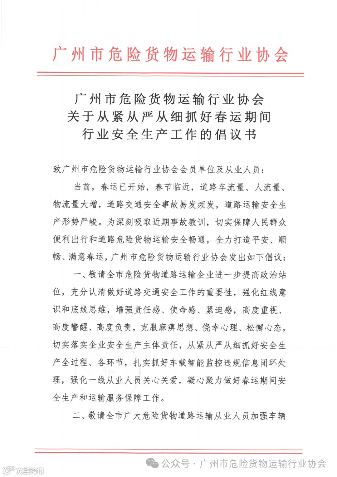 导读:关于从紧从严从细抓好春运期间行业安全生产工作的倡议书