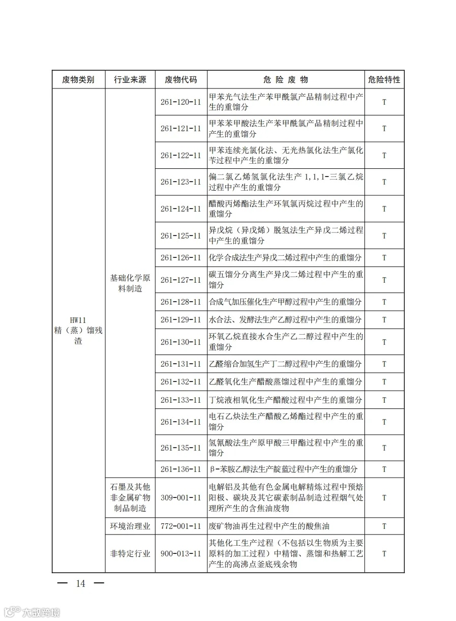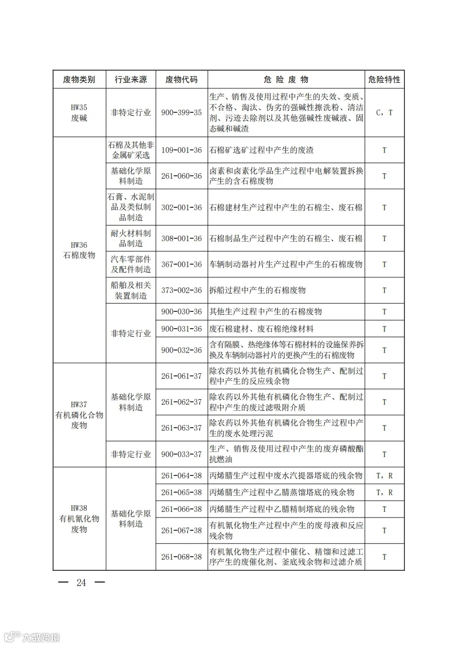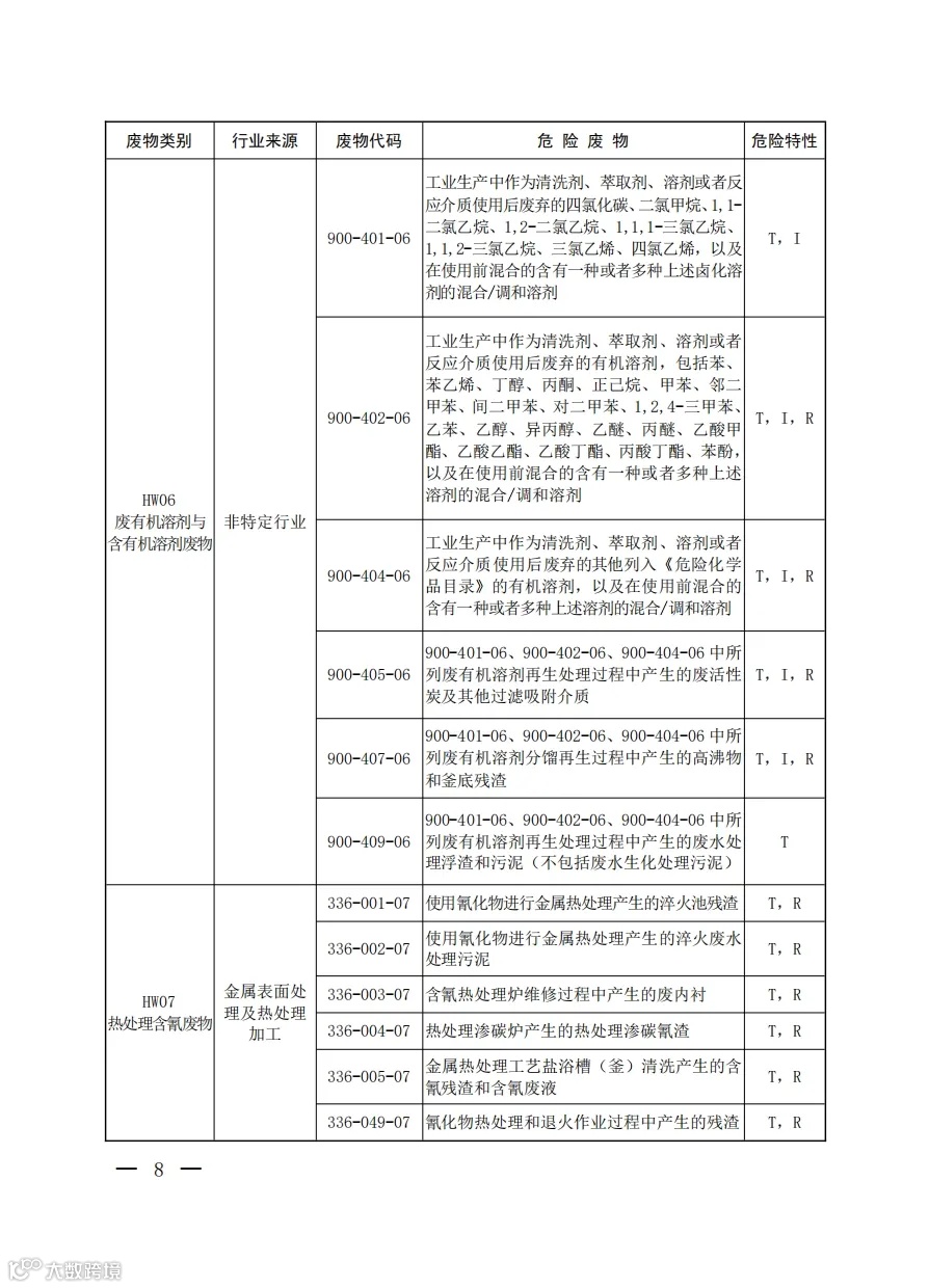 《国家危险废物名录(2025年版)》已于2024年11月8日由生态环境部2024年第5次部务会议审议通过,并经国家发展改革委、公安部、交通运输部、国家卫生健康委同意,现予公布,自2025年1月1日起施行。