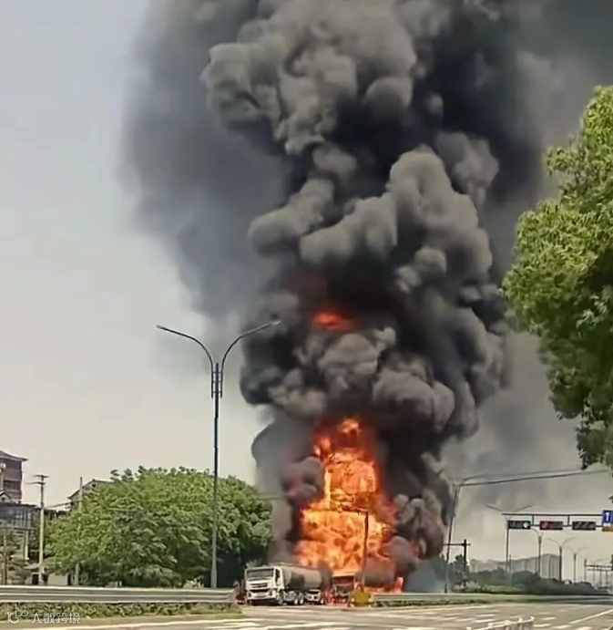 事件:5月11日11时30分左右,在杭州市富阳区320国道上,一辆油罐车与卡车不慎相撞,随即引发大火。