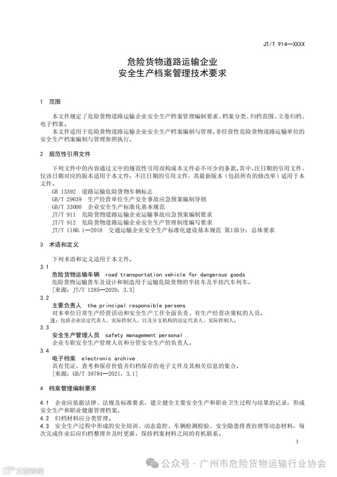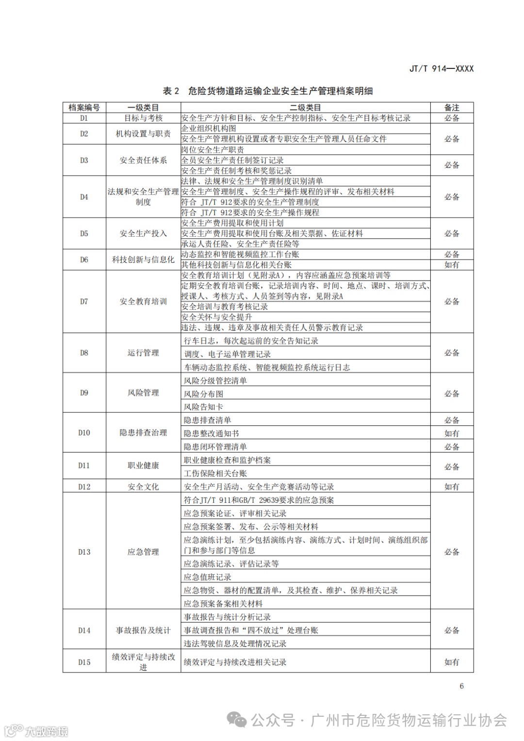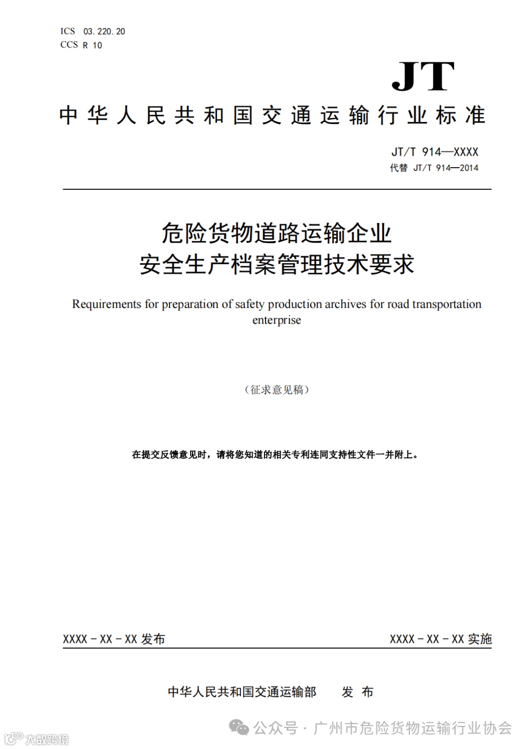 根据交通运输标准化计划的安排,由交通运输部公路科学研究所牵头修订的行业标准《危险货物道路运输企业安全生产档案管理技术要求》(计划号:JT 2023-10)已完成征求意见稿和编制说明(见附件)。按照有关规定,现公开征求意见。请研究提出修改意见,并于2024年6月29日前反馈至标准起草组,逾期视为无意见。如有对技术指标的重大意见,请说明论据或提出技术经济论证。