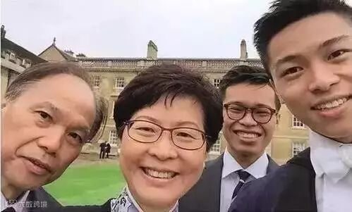 林郑二儿子林约希(中)在剑桥大学三一书院的毕业礼,摄于2016年