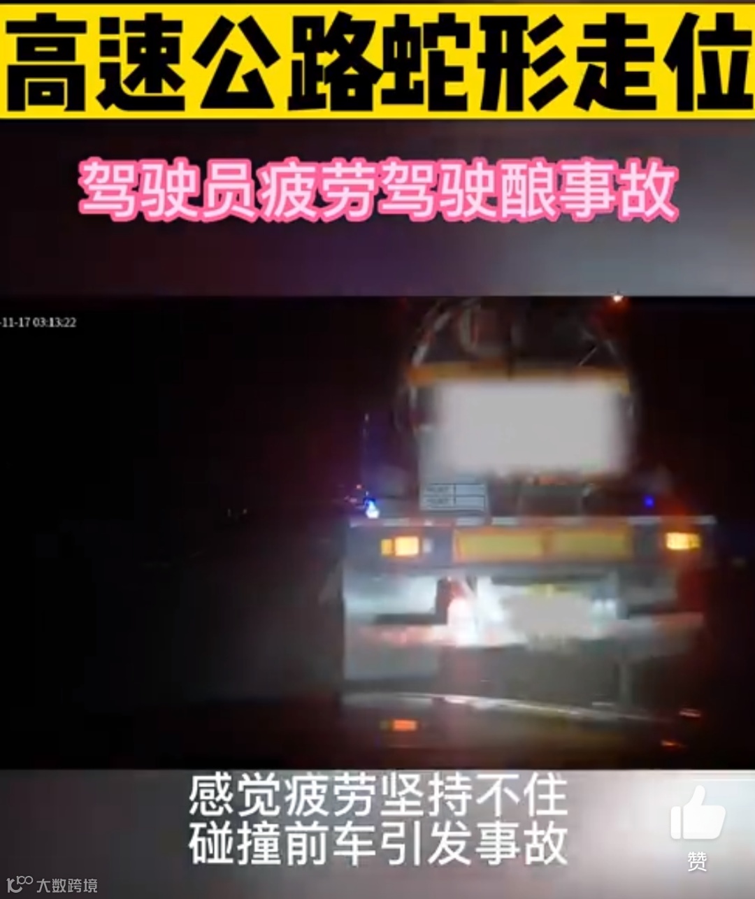 事件:11月17日凌晨3点13分,福州南连接线B道8公里200米处,小轿车驾驶人在高速公路上疲劳驾驶,车辆向右偏离正常行驶轨迹,碰撞第三车道正常行驶的危化品运输车尾部。