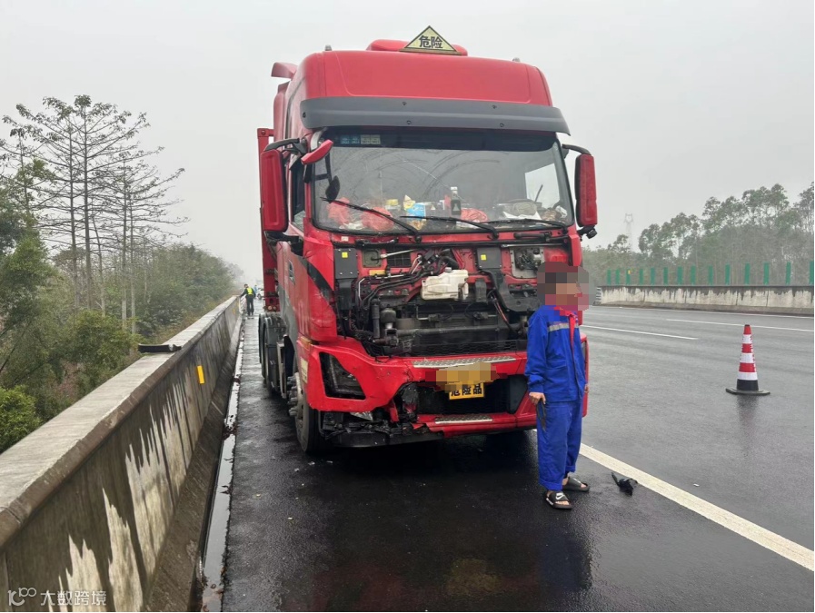 事件:1月11日下午16时左右,在G75兰海高速南宁往北海方向一重型危险品车辆追尾一小型普通客车。小型普通客车共乘坐两人,均有些不舒服,其中一人头部受伤。