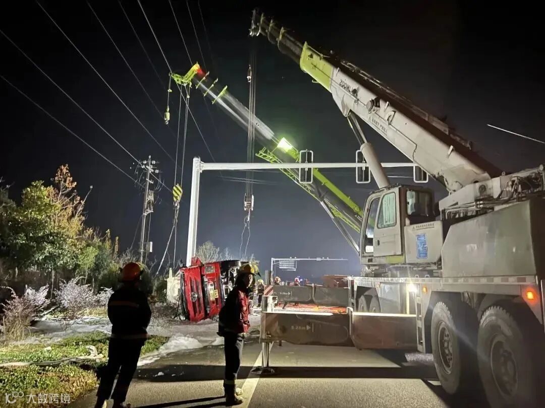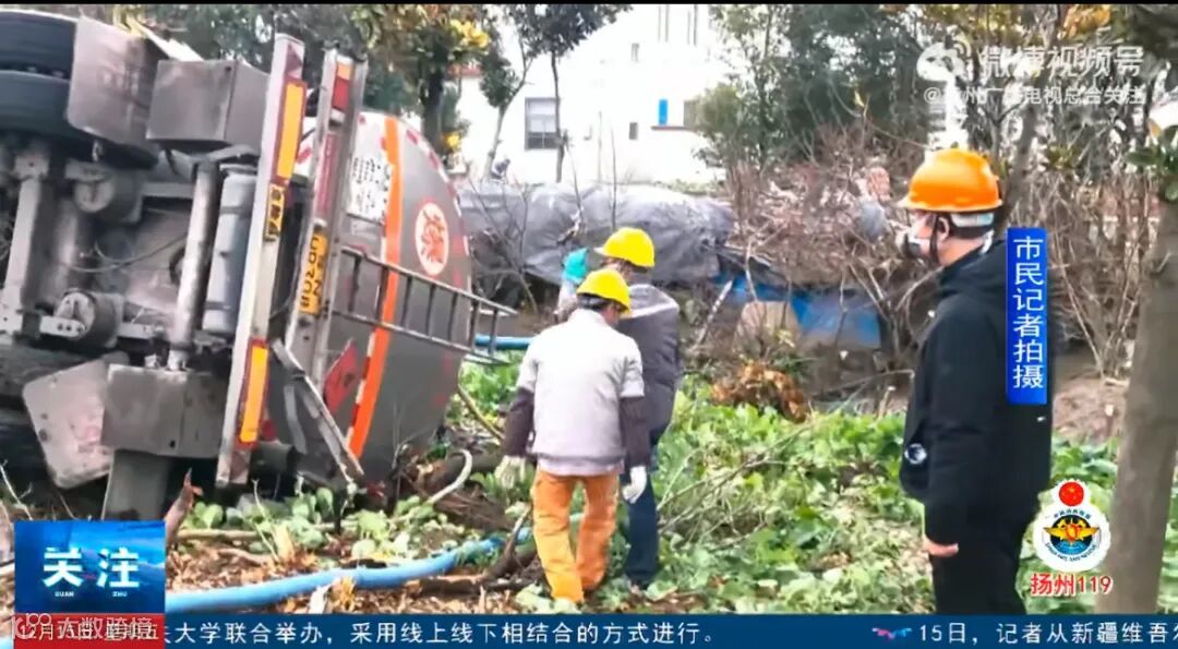 事件:12月12号晚上11点多,一辆槽罐车行驶到扬州233国道高邮车逻段时,发生交通事故,车辆侧翻。