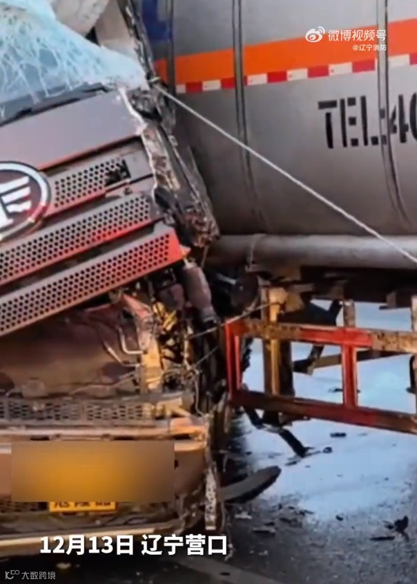 事件:12月13日,辽宁营口,两辆油罐车相撞,现场一片狼藉,其中一辆车内的驾驶员双腿被卡在方向盘下,情况危急。