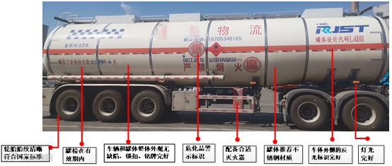 1. 车辆、罐体:外观无缺陷,锁扣、铭牌完好。