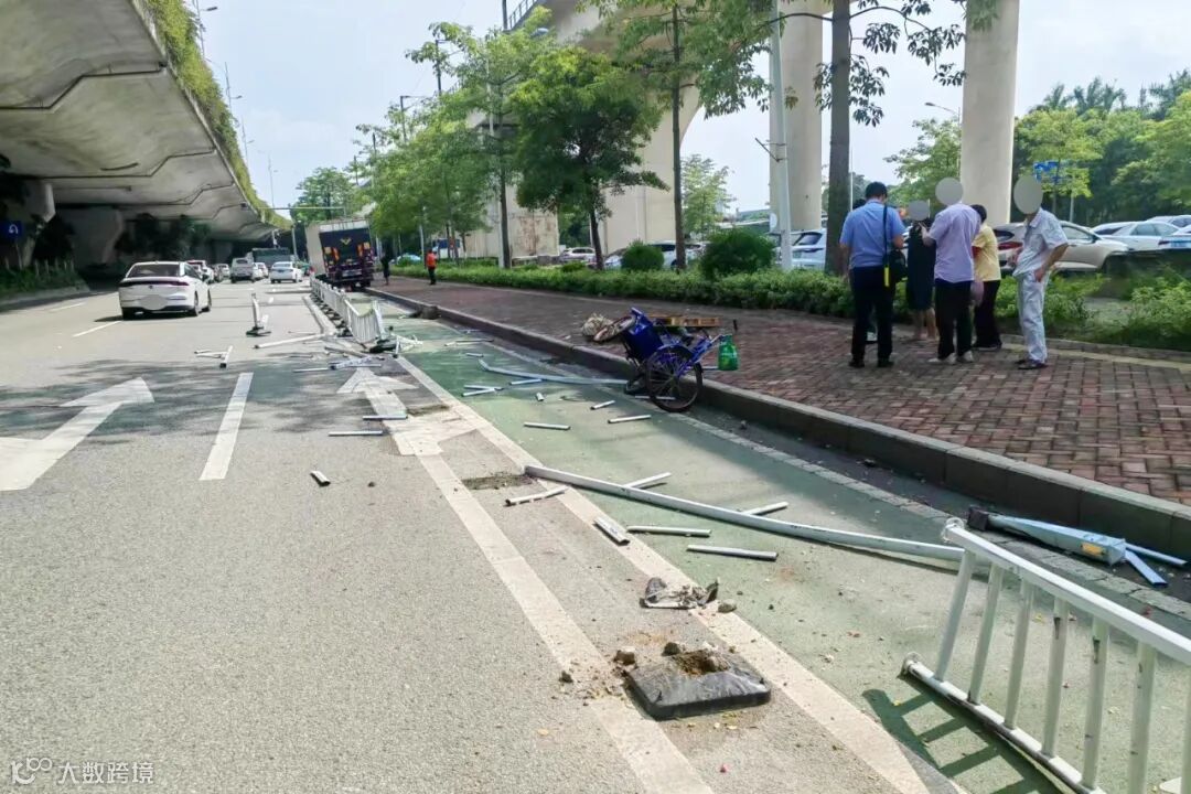 近日,在佛山顺德碧桂路容桂段辅道,一辆白色轻型厢式货车先是撞上非机动车道分隔栏,再撞上一辆在非机动车道行驶的三轮车。