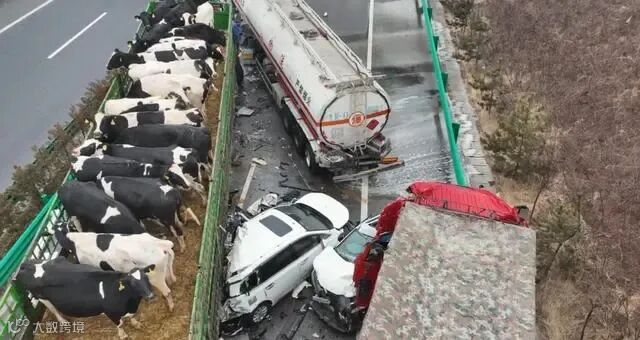 陕西一高速结冰6车连撞32吨汽油车泄漏