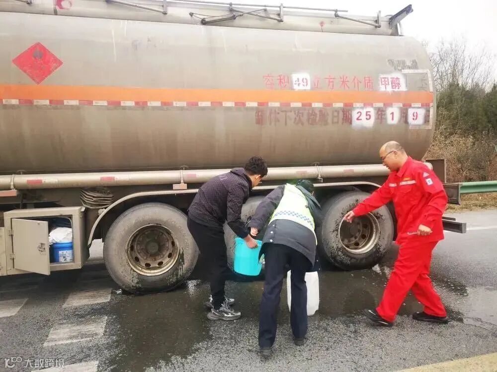 据了解,询问驾驶人得知,该车装载33.5吨甲醇,行驶中右前轮突然爆胎,目前车辆罐体无损坏,甲醇未发生泄漏。经“一路多方”协商决定,协作将故障车辆拖离隧道并护送出高速公路。交通执法温馨提醒:出车前要对车辆进行全面检查,一旦发生故障要及时开启危险报警闪光灯,并在车辆后方 150 米处摆放警示标志,拨打交通服务电话 "12328",在安全处等待救援。