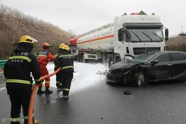 事件:2月20日上午,银百高速G69距旬邑县高速口附近发生6车连撞交通事故,一辆载有32吨汽油的油罐车储罐被撞破,导致大量汽油泄漏,情况十分紧急。