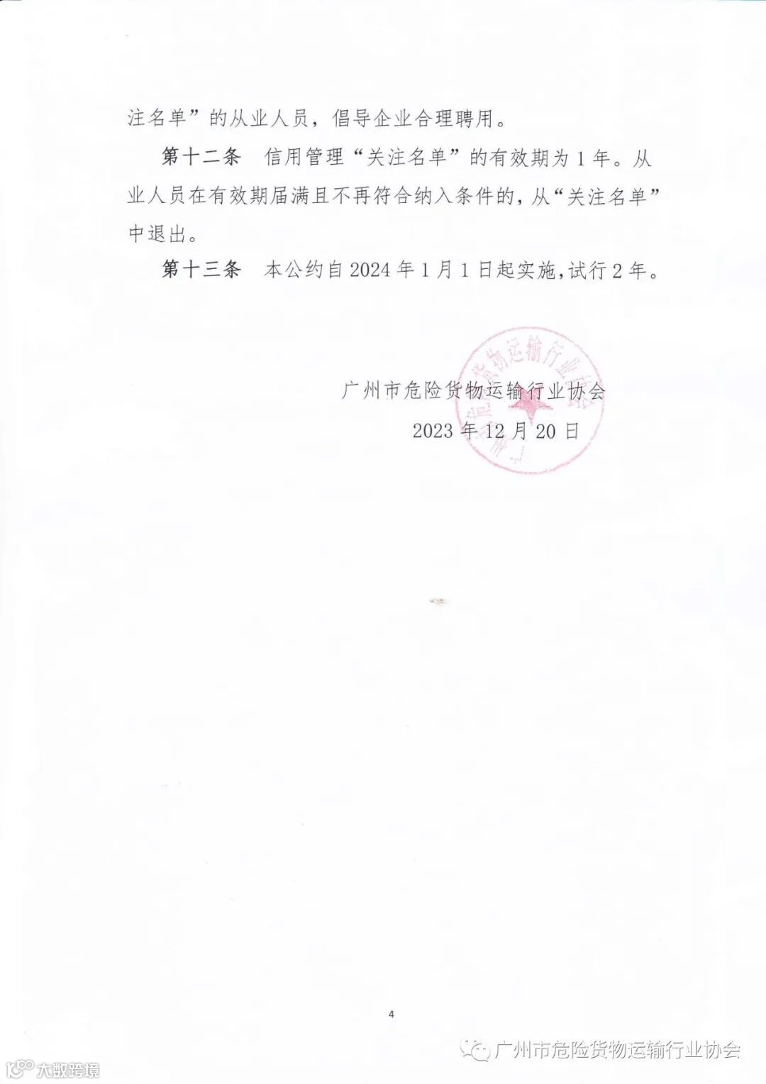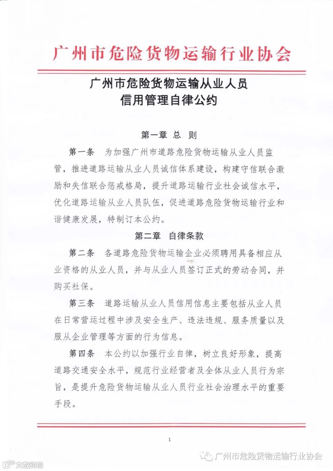 导读:广州市危险货物运输从业人员信用管理自律公约