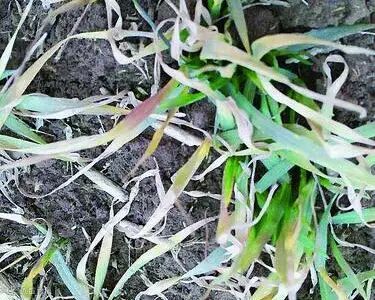 答:通过图片情况判断小麦是受冻害影响造成的。针对最近德州气温和雾霾天气,判断应该与前期使用除草剂影响有关,使用除草剂后遇低温,小麦抵抗力弱,造成地上部分受冻严重,叶片发黄发紫。建议开春温度回升之后,浇返青水时可适当撒施一点尿素进行缓解。同时根据田间情况,也可增加磷酸二氢钾、氨基酸叶面肥或者海藻酸叶面肥使用,进行缓解。今年冻害严重,开春后一定要加强营养调节,促进分蘖和拔节。