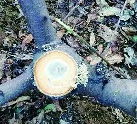 问:桃树枝干锯掉后木质里黑点是什么原因?