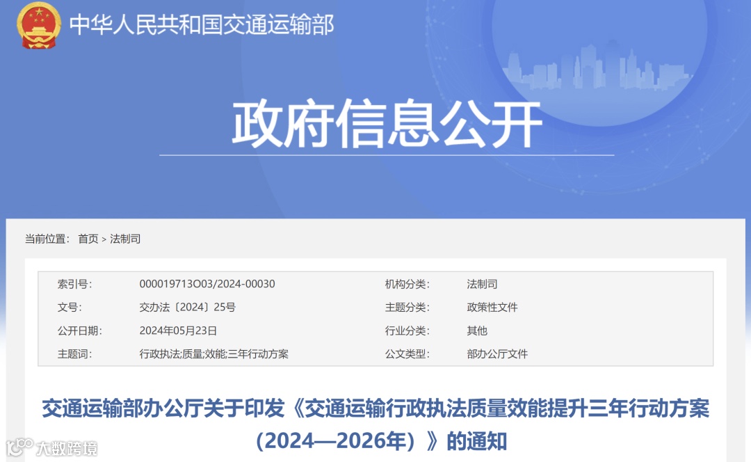交通运输行政执法质量效能提升三年行动方案(2024—2026年)