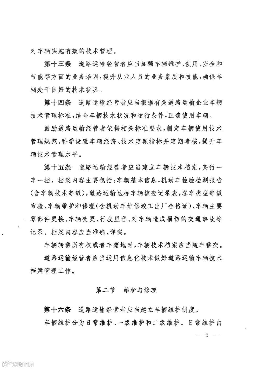 第五条 鼓励道路运输经营者使用安全、节能、环保型车辆,促进智能化、轻量化、标准化车型推广运用,加强科技应用,不断提高车辆的管理水平和技术水平。