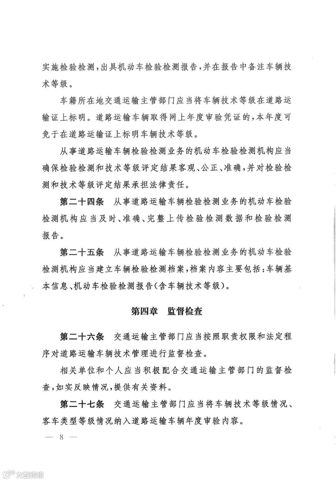 第二十六条 交通运输主管部门应当按照职责权限和法定程序对道路运输车辆技术管理进行监督检查。