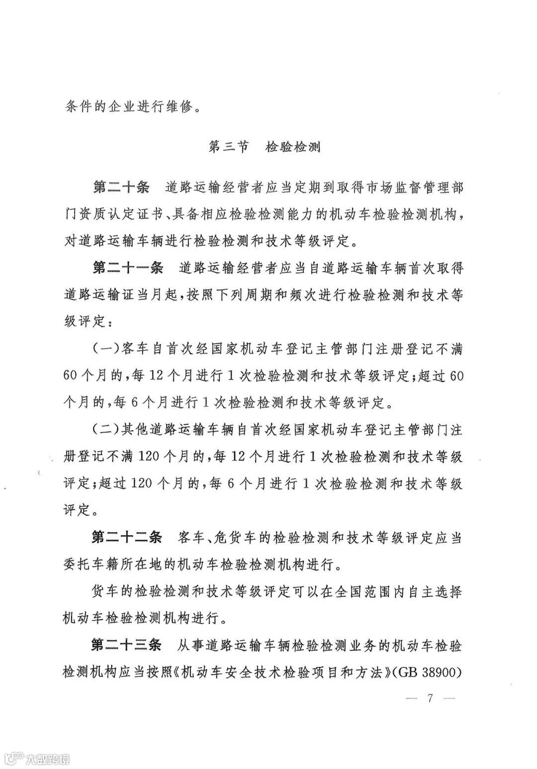 第二十三条 从事道路运输车辆检验检测业务的机动车检验检测机构应当按照《机动车安全技术检验项目和方法》(GB 38900)实施检验检测,出具机动车检验检测报告,并在报告中备注车辆技术等级。