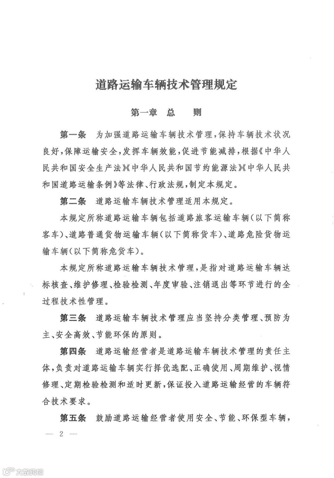 第一条 为加强道路运输车辆技术管理,保持车辆技术状况良好,保障运输安全,发挥车辆效能,促进节能减排,根据《中华人民共和国安全生产法》《中华人民共和国节约能源法》《中华人民共和国道路运输条例》等法律、行政法规,制定本规定。