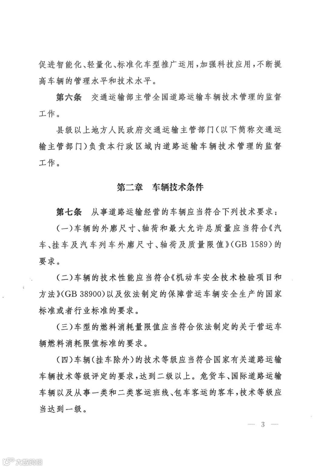 第六条 交通运输部主管全国道路运输车辆技术管理的监督工作。