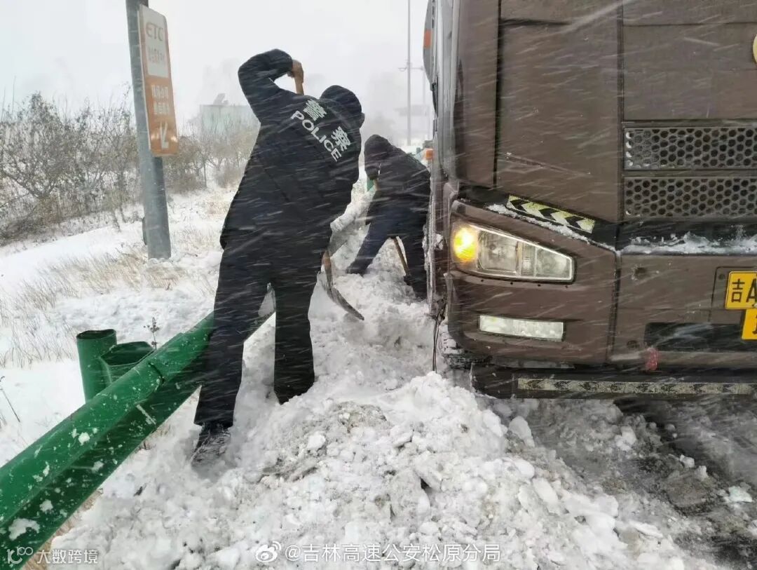 事件:11月6日14时许,吉林高速公安松原分局巡逻五大队民警发现松原西收费站附近,一危险化学品运输车辆由于雪大路滑,无法行驶,影响车辆通行,情况危险。