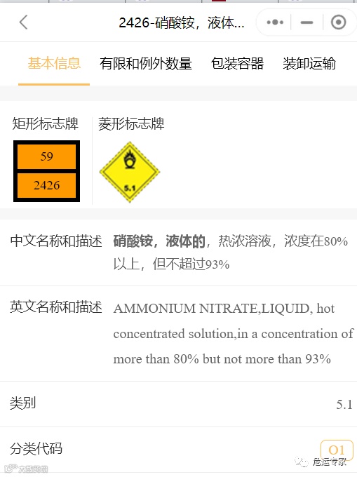 按照《危险货物道路运输规则》(JT/T 617),液态硝酸铵属于5类1项危险货物,具有强氧化性。