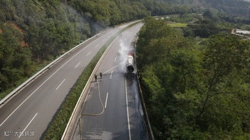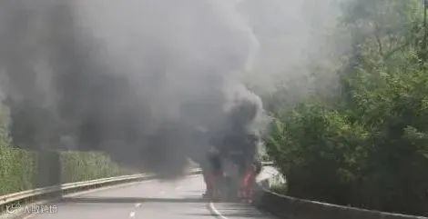 近日,广昆高速一辆载有30吨液态硝酸铵的罐车,在行驶过程中轮胎突然起火。