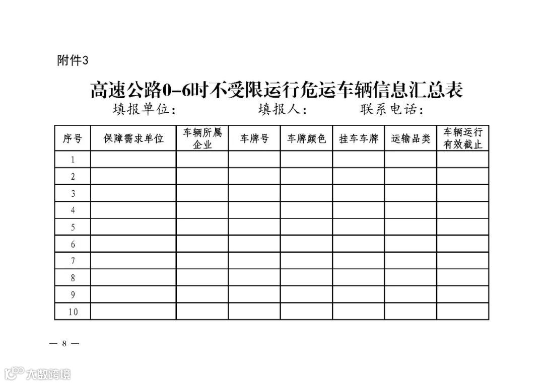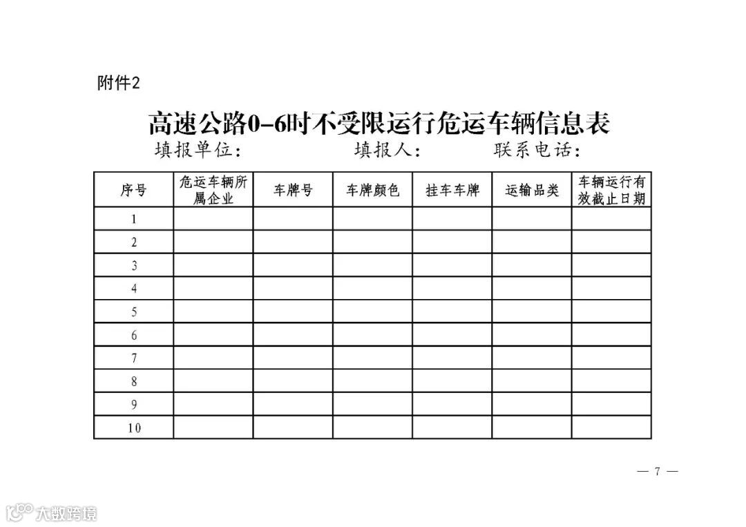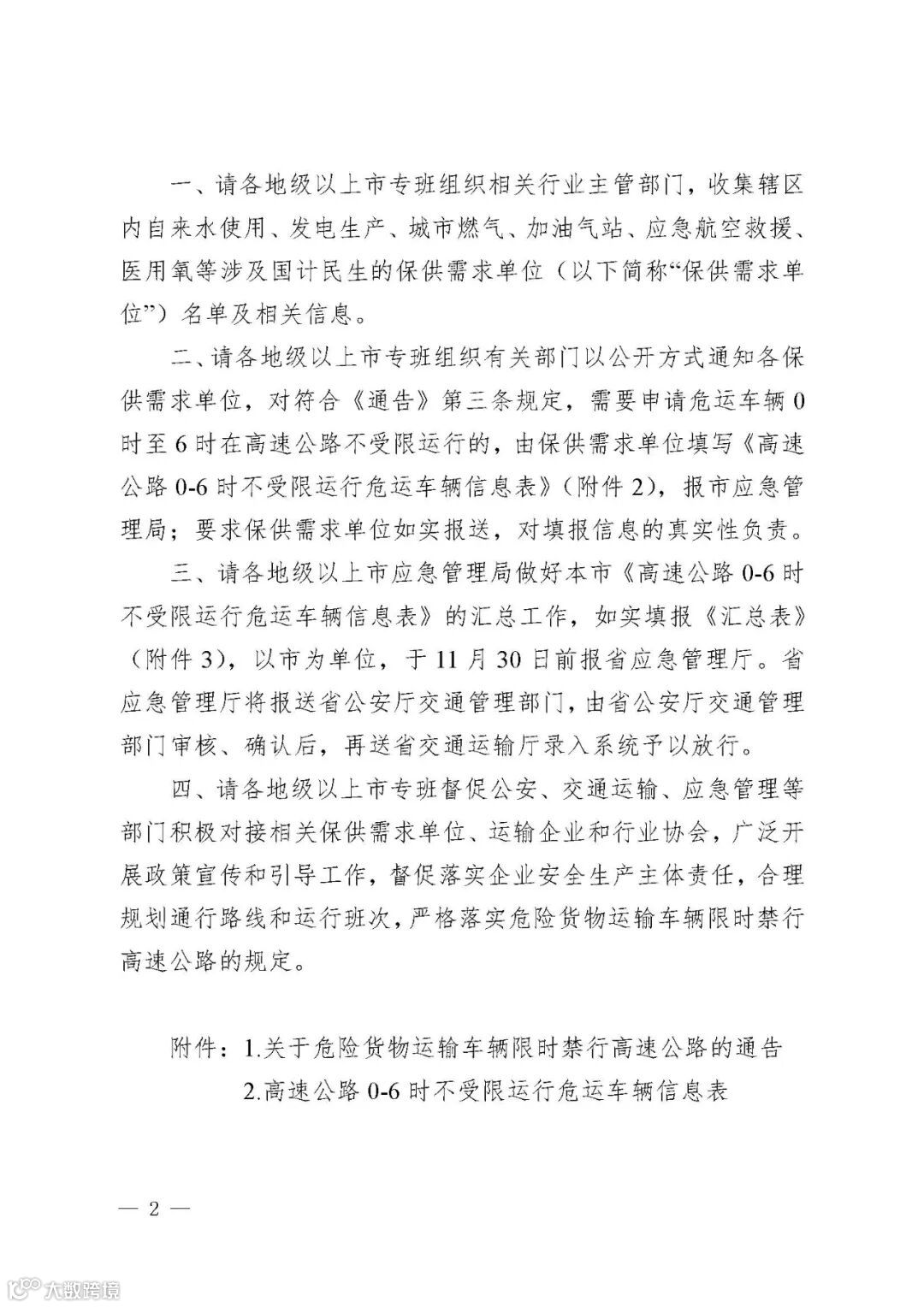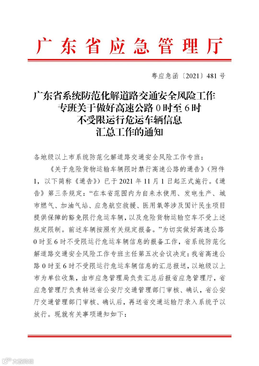 导读:关于做好高速公路0时至6时不受限运行危运车辆信息汇总工作的通知