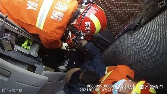 2月23日,从山东烟台福山消防救援大队获悉,当日早上5点45分,沈海高速福山收费站往栖霞方向发生一起车祸,造成一人被困急需救援。救援人员迅速赶赴处置。到达现场看到,一辆油罐车侧翻在路边,车头撞在绿化带隔离栏上受损严重,司机被卡在驾驶室深处,经现场喊话虽有回应声音,但无法看到被困人员具体情况。在消防员的坚持不懈之下,历时30分钟,救生通道终于被打通了,被困人员成功救出,并移交给现场的医护人员。
