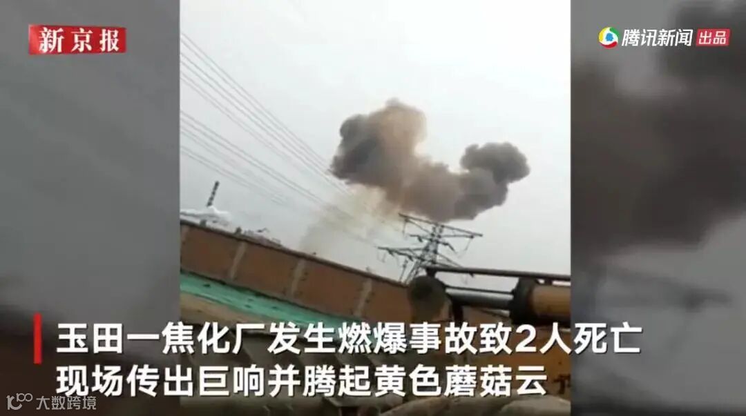 2月23日,河北唐山,据玉田广播电视台消息,下午4:45,玉田县经济开发区河北天柱钢铁集团古玉煤焦化工有限公司室外甲醇合成装置管道发生燃爆,事故造成两名现场巡检人员死亡。附近居民拍下爆炸后画面,住户窗户被震碎,现场腾起蘑菇云。目前事故原因正在调查中。