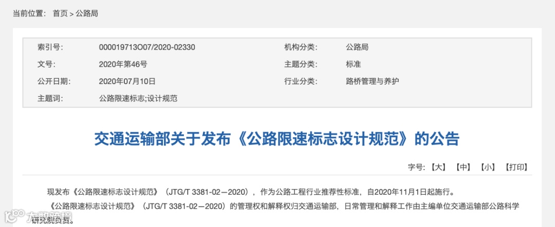 交通运输部近期发布了《公路限速标志设计规范》公告,将进一步规范全国限速标志设计,自2020年11月1日起施行。大量不合理的限速标志将会面临拆除。