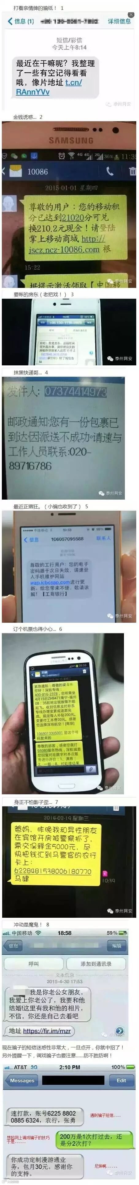 近日,湖北王女士收到短信,让她点开链接看朋友聚会照,她点开后,电话短信都收不到了,银行卡里3万多元也被盗刷...现在骗子编写短信迷惑性非常大,一旦点入链接,可能让你倾家荡产!下面这些短信很可能是骗局,一定要小心!