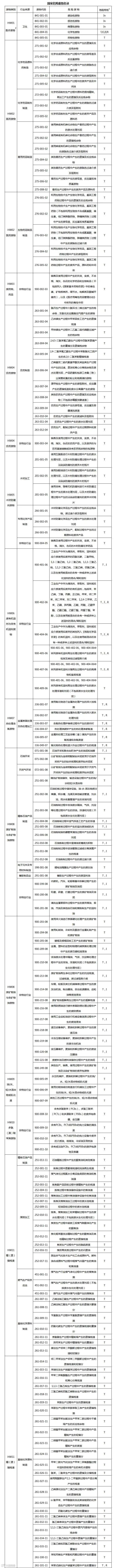 注:1.所列危险特性为该种危险废物的主要危险特性,不排除可能具有其他危险特性;“,”分隔的多个危险特性代码,表示该种废物具有列在第一位代码所代表的危险特性,且可能具有所列其他代码代表的危险特性;“/”分隔的多个危险特性代码,表示该种危险废物具有所列代码所代表的一种或多种危险特性。