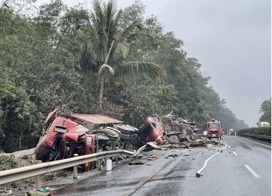 高速路货车追尾油罐车