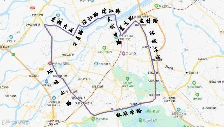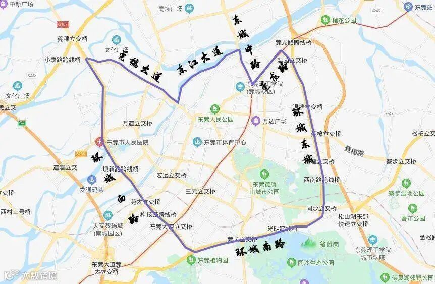 3.环城东路一环城南路一环城西路一莞穗路一万高路一沿江路一滨江路一东城中路一莞龙路一龙樟路一环城东路连接范围以内区域(不含除万高路以外的上述边界道路)和东莞大道每天7:00-20:00禁止中型、重型载货汽车通行。