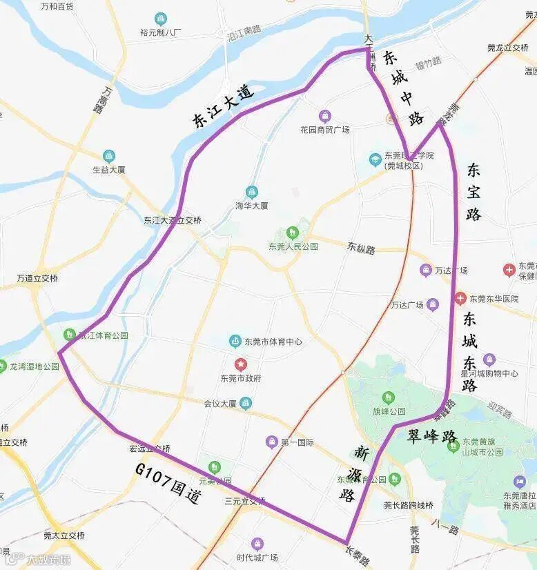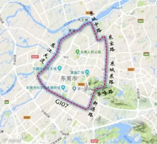 1.东宝路一东城东路一翠峰路一新源路一G107国道一东江大道一东城中路一莞龙路一东宝路连接范围以内(不含上述边界道路),每天7:00-9:00、16:00-20:00禁止载货汽车通行。