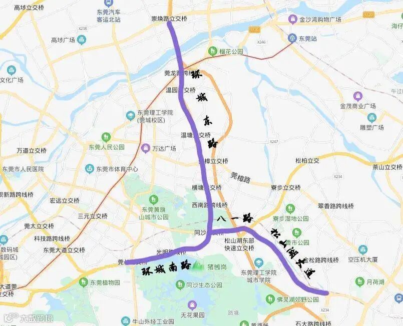 5.环城南路(莞长立交)一环城东路(崇焕立交),八一路(同沙立交)一松山湖大道(石大立交)路段,每天7:00-20:00禁止重型载货汽车通行。