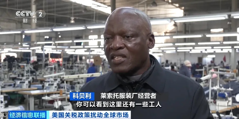 莱索托服装厂经营者 科贝利:很多工人已经被解雇了,因为我告诉你10%的影响已经产生了,你可以看到这里还有一些工人,这是因为我们现在只专注于出口南非市场,对莱索托来说,高关税意味着我们必须放弃美国市场。