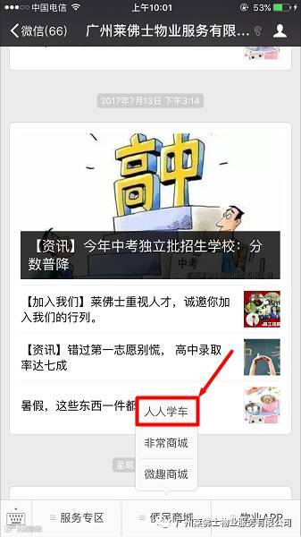 参与本优惠活动,除了本文章参与外,别无它法!本文章能在广州市莱佛士物业服务有限公司的公众号下方,点击便民商城,再点击人人学车就能找到文章。 (如图所示)