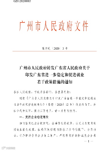 疫情期间,为统筹做好新冠肺炎防控和经济社会发展工作,以更大力度实施好就业优先政策,多措并举做好各类群体就业,确保全市就业大局稳定和经济社会持续健康发展,广州市政府再次重磅出击,转发《广东省进一步稳定和促进就业若干政策措施的通知》,并结合广州市实际,通过六大措施进一步支持企业稳定岗位、促进多渠道就业、鼓励创业促就业、稳定重点群体就业,帮扶企业一起共渡难关。