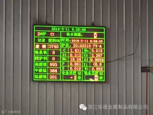 熔炼车间实时显示炉料加入量和钢水成份的大屏幕