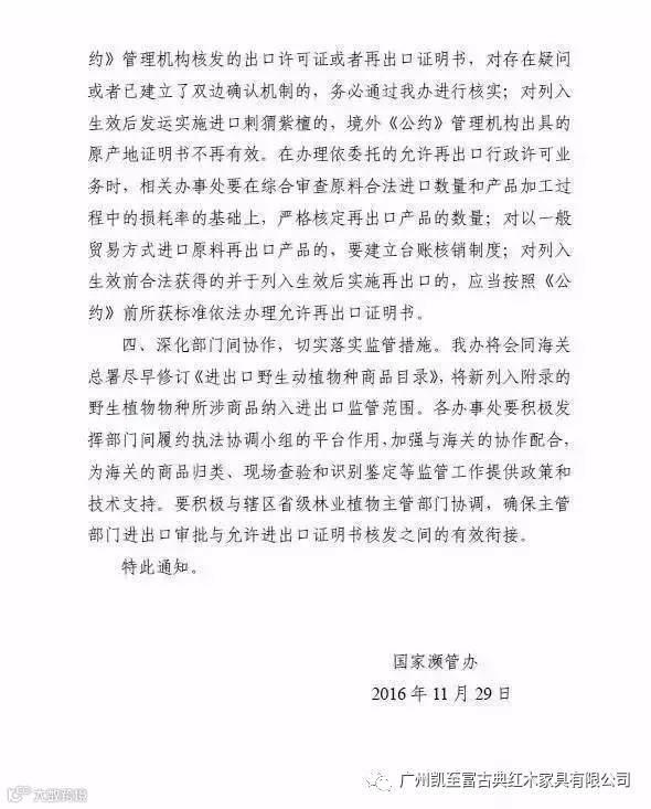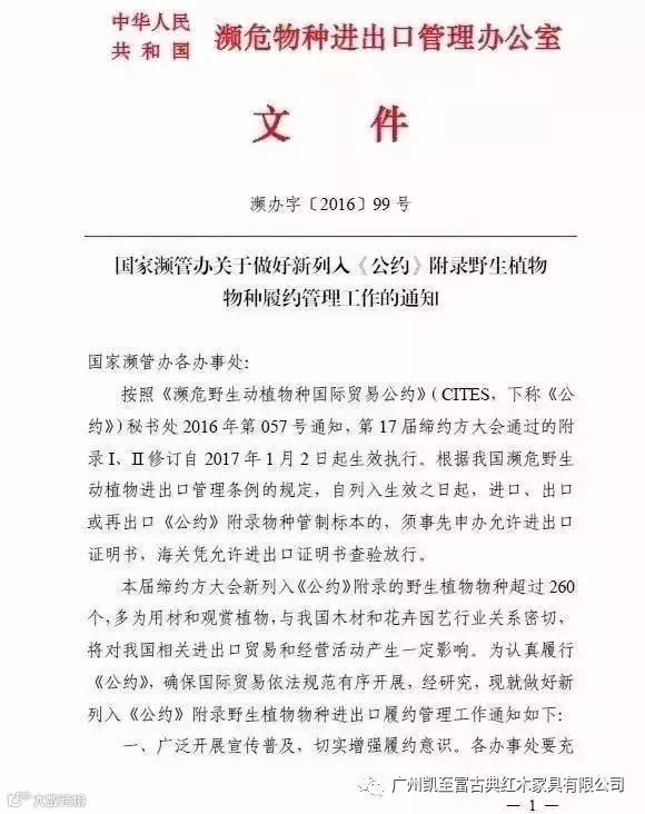 国家濒管办2016年11月29日发布:《中华人民共和国濒危物种进出口管理办公室文件濒办字〔2016〕99号》,关于做好新列入《公约》附录野生植物物种履约管理工作的通知,其正文内容如下所述: