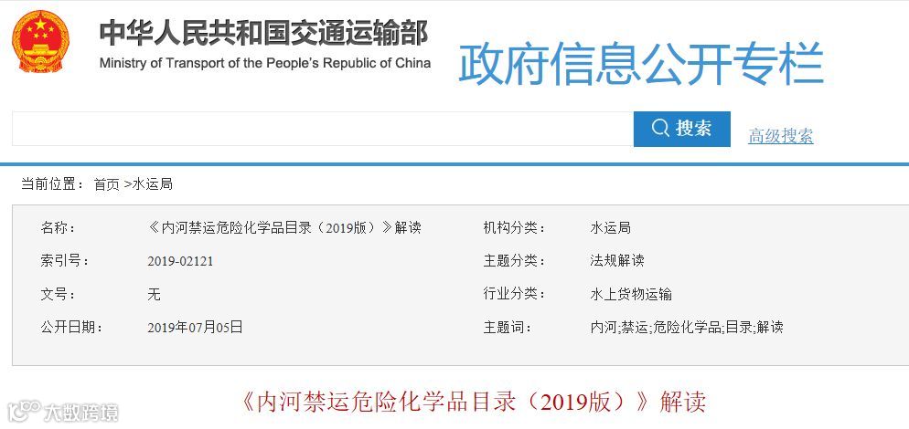 内河危险化学品运输事关人民生命财产安全、公共环境保护。《内河禁运危险化学品目录》(以下简称《禁运目录》)是落实《危险化学品安全管理条例》(以下简称《条例》)的重要基础性文件,是企业落实危险化学品安全管理主体责任,以及相关部门实施监督管理的重要依据。根据《条例》规定,交通运输部会同生态环境部、工业和信息化部、应急管理部进行了反复研究和论证,广泛征求了相关行业协会、企业和专家的意见后,制定了《内河禁运危险化学品目录管理办法》,并相应调整发布了《禁运目录(2019版)》,自发布之日起实施,《禁运目录(2015版)》(试行)同时予以废止。